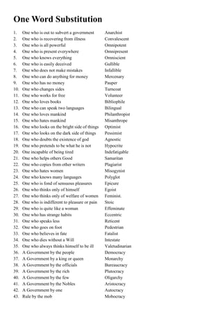 One Word Substitution English Quizizz